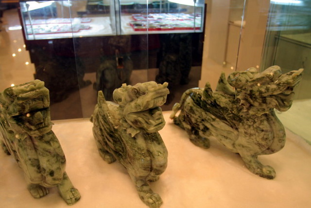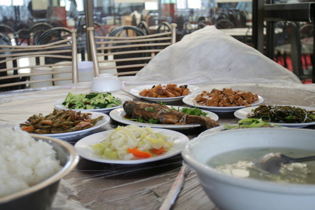 午餐是在玉博覽城附屬的快餐廳吃的,十人一桌的合菜,八菜一湯,不難吃,但是煮得很鹹很鹹,難道,中國大陸的鹽是不用錢的嗎?雖然衛生看起來不差,吃起來還是有點驚驚。 ![]()