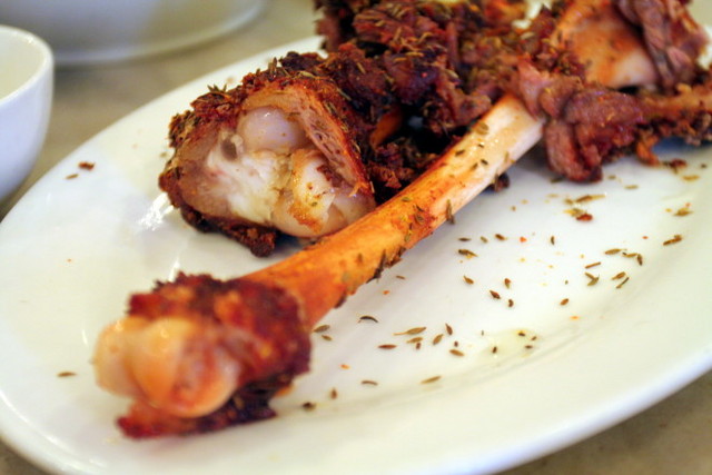 這道是我的最最愛!撒著濃濃新疆味的孜然,烤得金黃香酥的羊腿骨,讓人只想豪邁地啃它個精光。