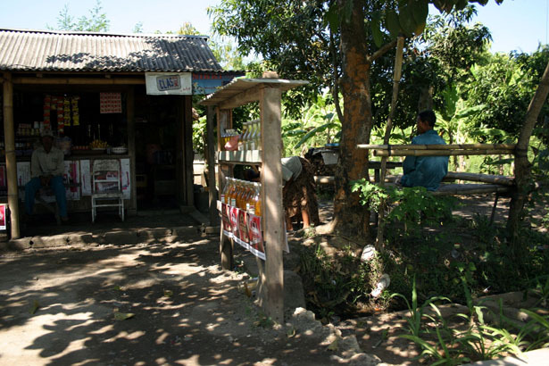 沿途放眼望去依然是風光明媚的鄉村景致,偶而會經過一間像是休息站的雜貨店,每間店的門口都會有像這樣的小亭子,架上擺著一瓶瓶的東西。