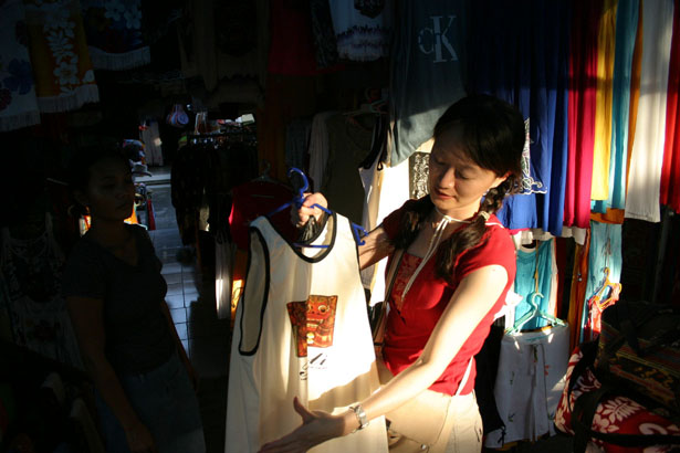 連免稅店也充滿巴里島風情 故意擺臭臉的吳老爺