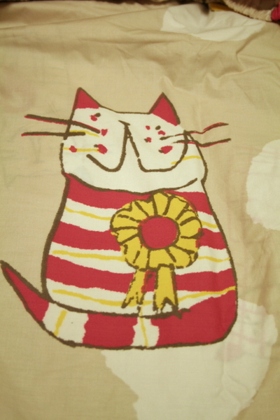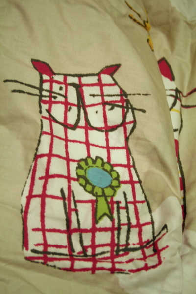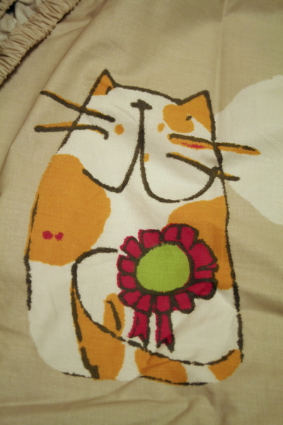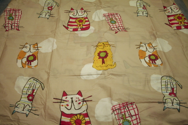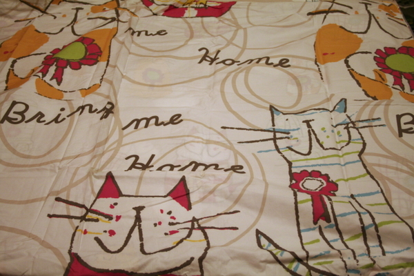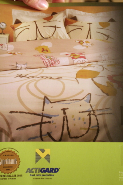 週末去了趟香港,意外地在太平山的山頂廣場的家飾店發現了這一套床包+被套+枕頭套。我看到一整床的貓貓就很想尖叫,連枕頭套都有貓耳朵哩!