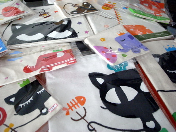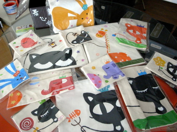 有拿過2007-2009年的三貓和四貓年曆卡的朋友,一定覺得卡片的排版設計很可愛吧!NOAHSHOES的名片也是她排版印製的。多才多藝的設計師 Ivy也是一位對小動物非常有愛心的人喔!她有一些手工繪製的零錢包、筆袋和書袋 (可水洗不掉色),喜歡的朋友可以跟她預訂喔!獨一無二又物美價廉。