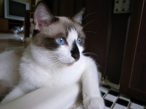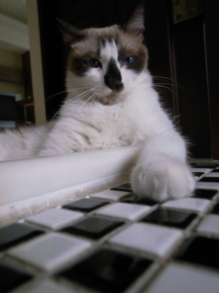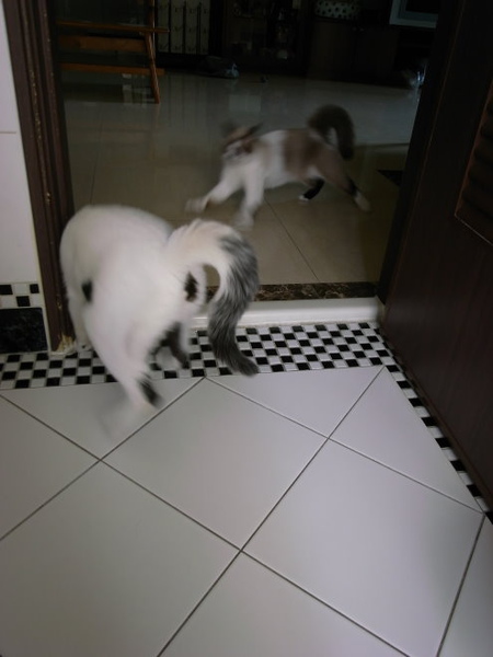有一次鴿子從窗邊飛過去,這小妞竟然從客廳飛奔而來,然後一頭撞到玻璃窗上去。她閒閒也會追打黑小鼻 看不出這氣質不凡的丫頭是粗魯的恰北北吧!