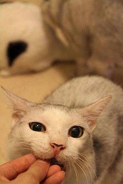 今天送Yoda去洗澡全身都是臭口水沾貓砂,洗好久.洗好出來就黏著我,體重4.05公斤,口腔狀況ok,但皮膚上有小傷口和肉芽腫.膨皮多了連咪咪也偷親白拋拋會罵痞諾尼再欺負我尼就屎定了!鼻子上的髒污很難洗乾淨,但不減帥氣.食慾也超好,因為舌頭不好使力,現在都用手餵.
