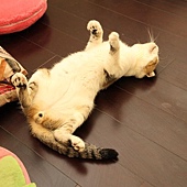 他很親人,愛撒嬌,很愛滾來滾去.聽說會撲咬大狗喔!