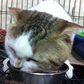 拿下頭罩後,脖子整圈都沒毛.非常可憐.
