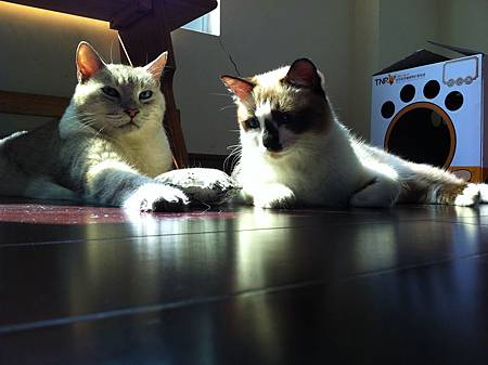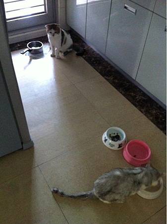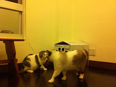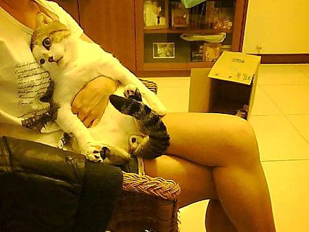 第三輪凱咪打,我衝進去,兩手各hold住兩隻公貓,
