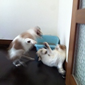 第三天,發現不能和芒果玩猜拳,一玩就會被咬...